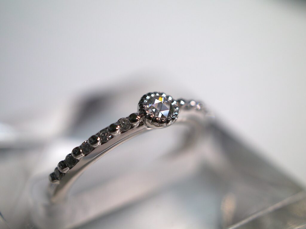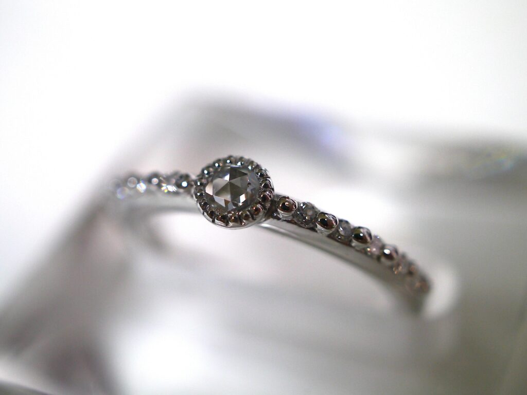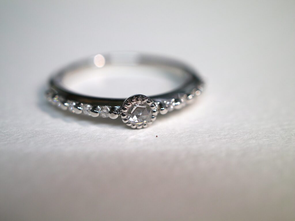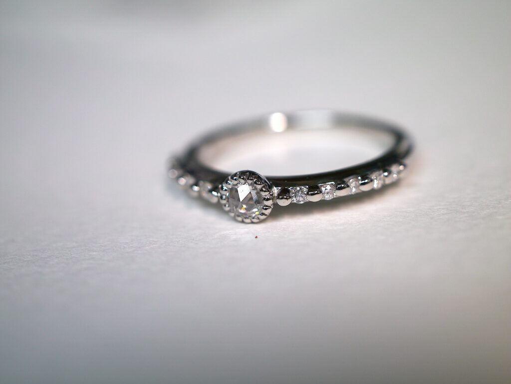 ローズカット・ダイヤモンドを使用したプラチナリングです。